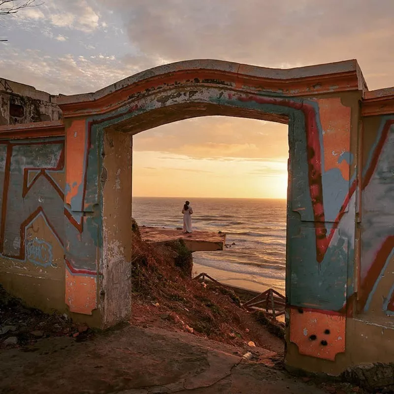 Đây là điểm thu hút nhất tại đây. Cánh cổng màu vàng cổ kính nổi bật giữa nền trời xanh, mở ra một tầm nhìn bao la ra đại dương. Đứng tại đây, bạn sẽ cảm giác như đang đứng ở ranh giới giữa núi non và biển cả.